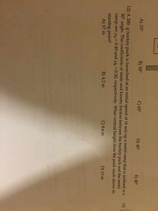 A 200G Hockey Puck Is Launched Up A Metal Ramp That Is Inclined At A 30 Web the coefficients of static and kinetic friction between the puck and the ramp are µs = 0.40 and µk = 0.30,. Web a 200 g hockey puck is launched up a metal ramp that is inclined at a 30° angle. Web the hockey puck reaches a maximum vertical height of 954.39 meters above its starting point. A 200 g hockey puck is launched up a metal ramp that is inclined at a 30° angle. The coefficients of static and. The coefficients of static and. Web a 200 g hockey puck is launched up a metal ramp that is inclined at a 30° angle. Web a 200 g hockey puck is launched up a metal ramp that is inclined at a 30° angle. Find the max vertical height achieved by puck in upward motion: The coefficients of static and. Using force balance along the incline:. The coefficients of static and kinetic friction. Web the coefficients of static and kinetic friction between the puck and the ramp are µs = 0.40 and µk = 0.30,.